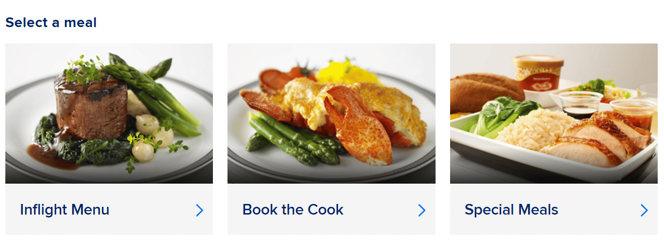 You’re allowed to choose from the In-Flight Menu, Book the Cook, and Special Meals. If you find that nothing on the Book the Cook menu tickles your fancy, you can directly choose from the In-Flight Menu that would be presented onboard anyway.