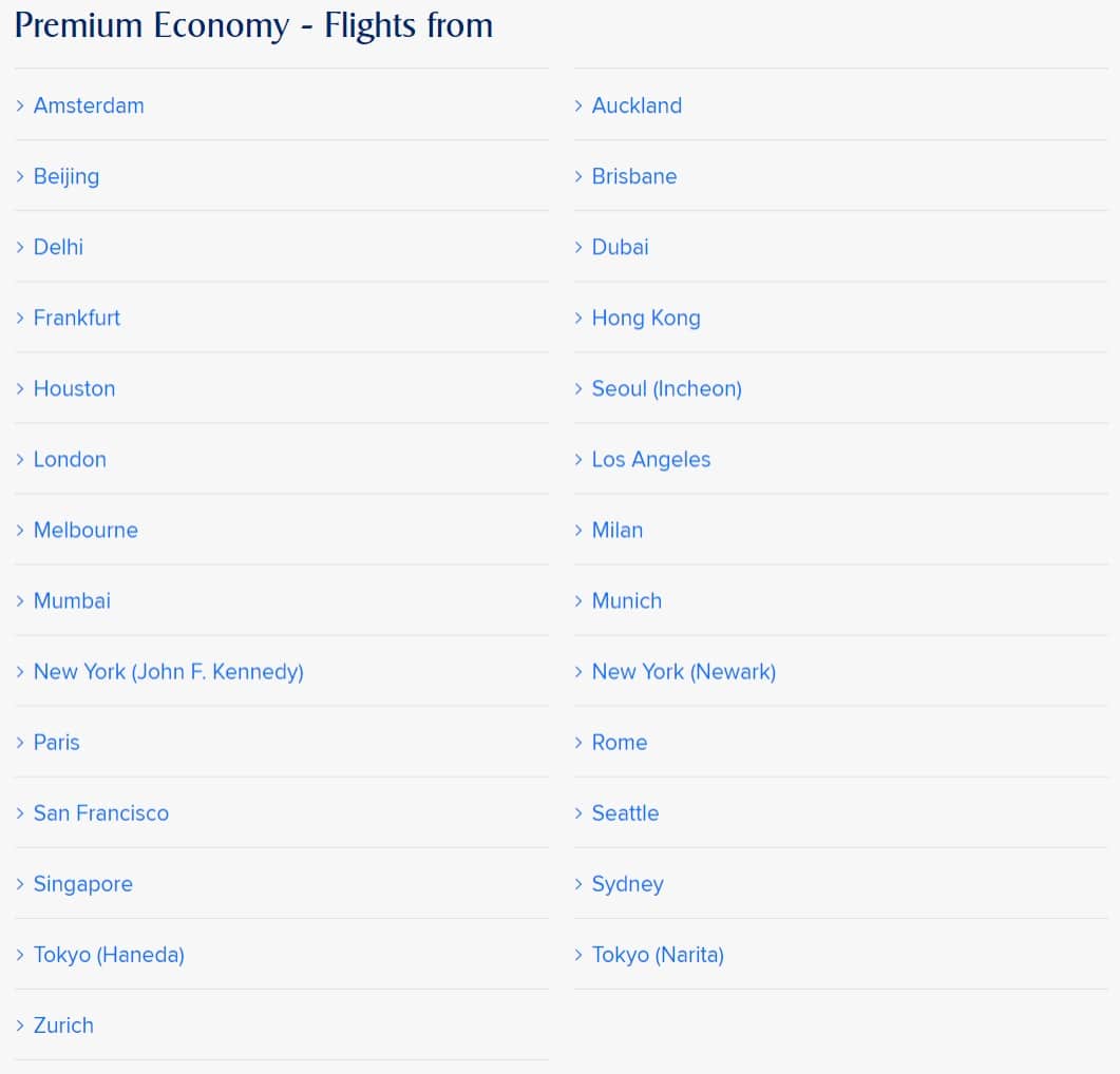And lastly, Book the Cook is available to premium economy passengers flying out of the following cities: