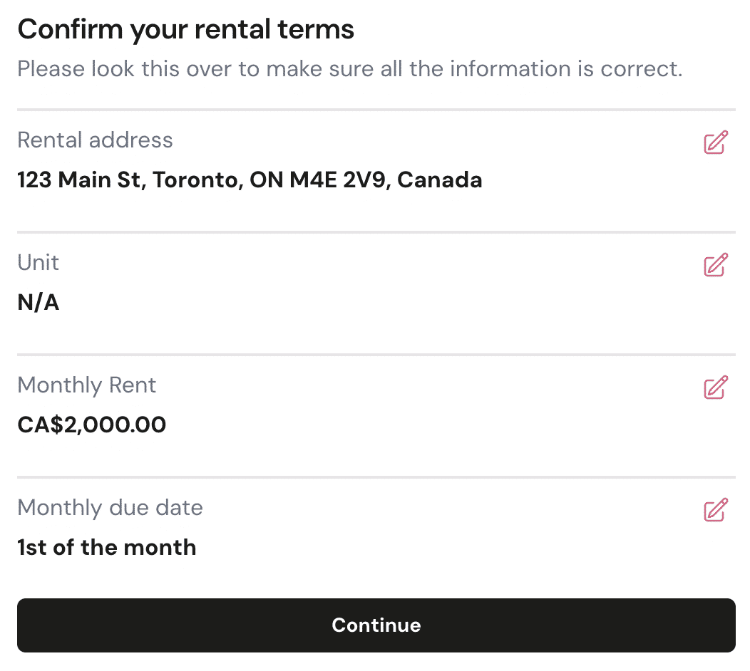 Chexy makes its money on this service by charging renters a fee of 1.75% of their monthly rent. To illustrate this simply, if your monthly rent is $2,000 (all figures in CAD), you’ll pay Chexy $35, bringing your total monthly payment to $2,035.
