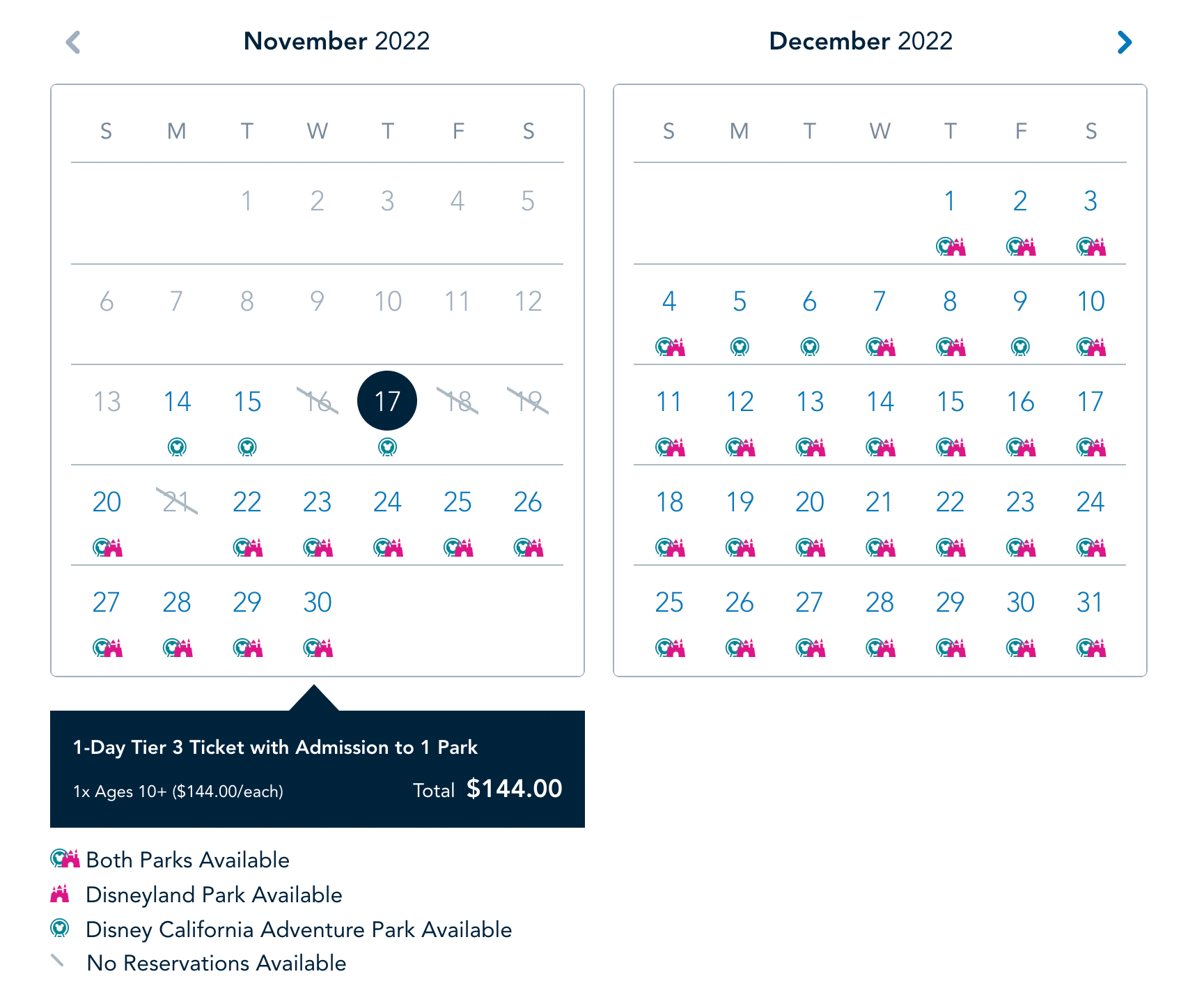 Note that buying a ticket alone will not get you into the Disneyland parks. After you purchase a ticket, decide on which dates and parks you’d like to visit, and then make a reservation.