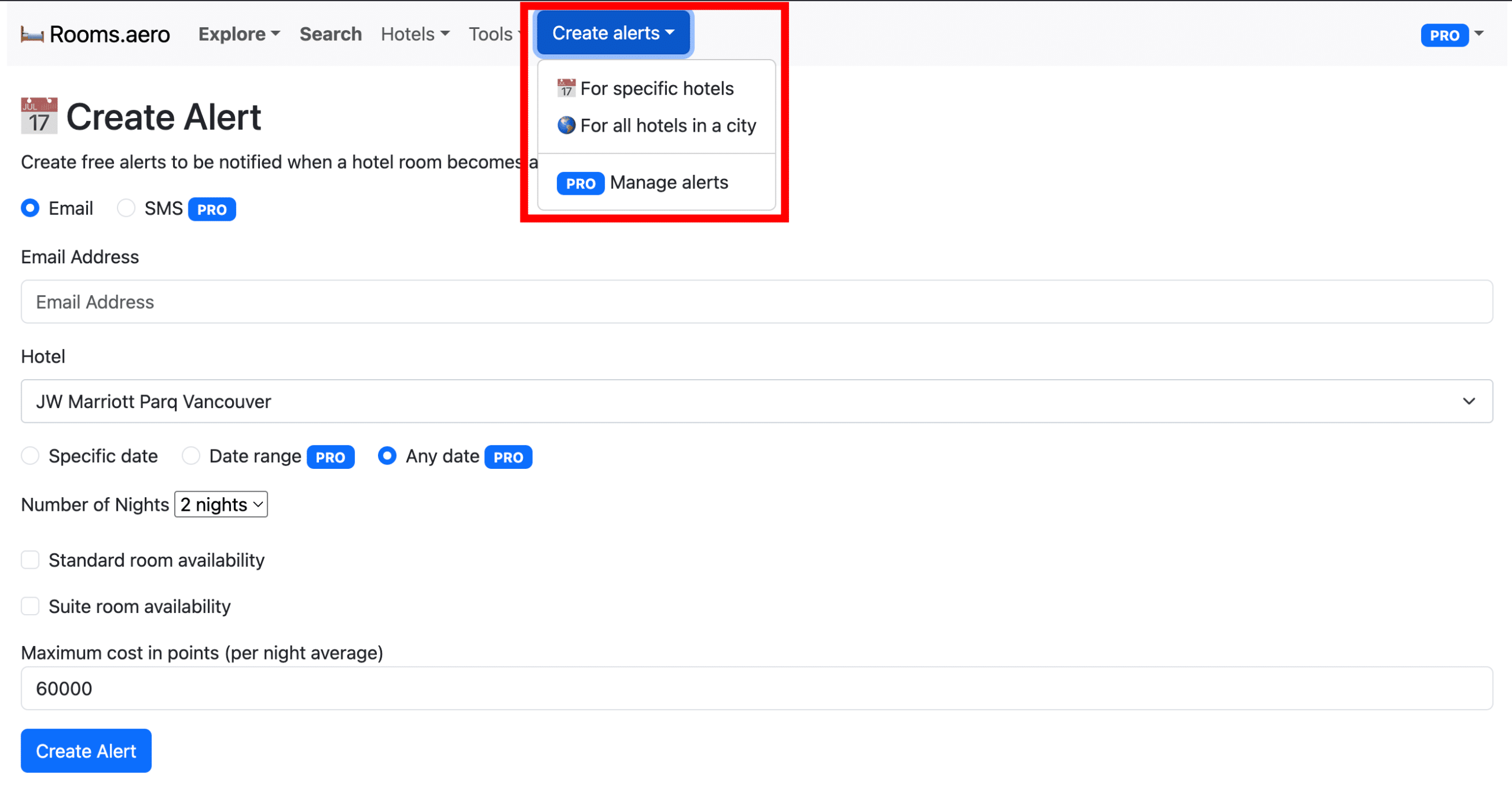 If you’re already a Seats.aero Pro subscriber, Rooms.aero’s unlimited alerts make it a great choice.