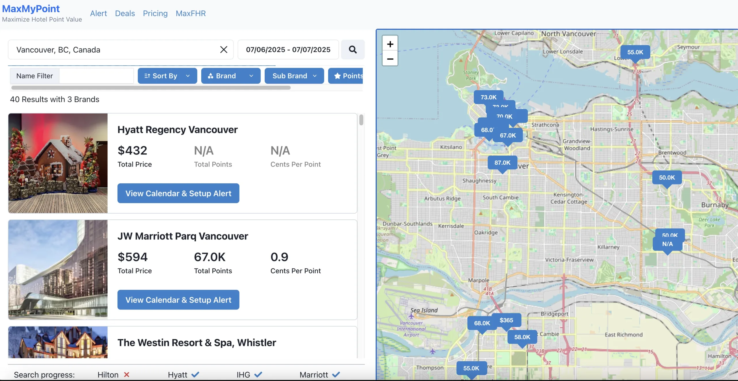 Another standout feature is its ability to display both points and cash pricing side by side. Cash prices fluctuate due to promotions and rate changes, but this feature gives you a reliable baseline to determine whether redeeming points makes sense.