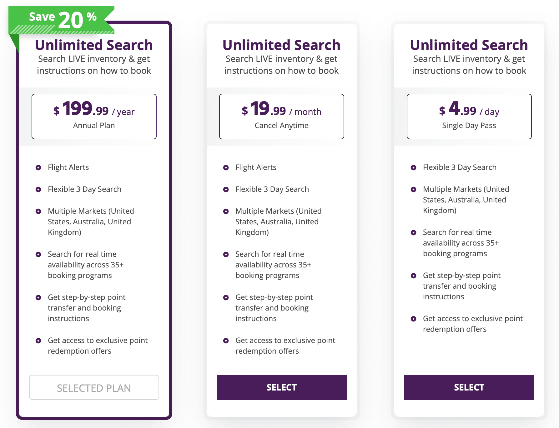 When considering the price, AwardLogic is on the more expensive side compared to similar subscription-based services. For example, an annual subscription with ExpertFlyer is half the price, and there’s a fair bit more you can do with ExpertFlyer than you can’t do with AwardLogic.