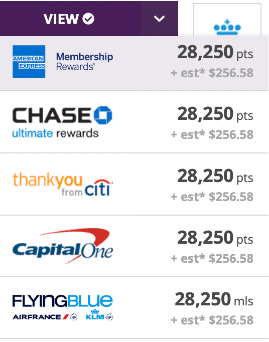 Of these, we can now see that the best option is clearly to book the KLM flights via Amsterdam. If you look closely, you’ll see that the results state that there are seven more ways to book, aside from using Chase Ultimate Rewards as suggested in the search result.