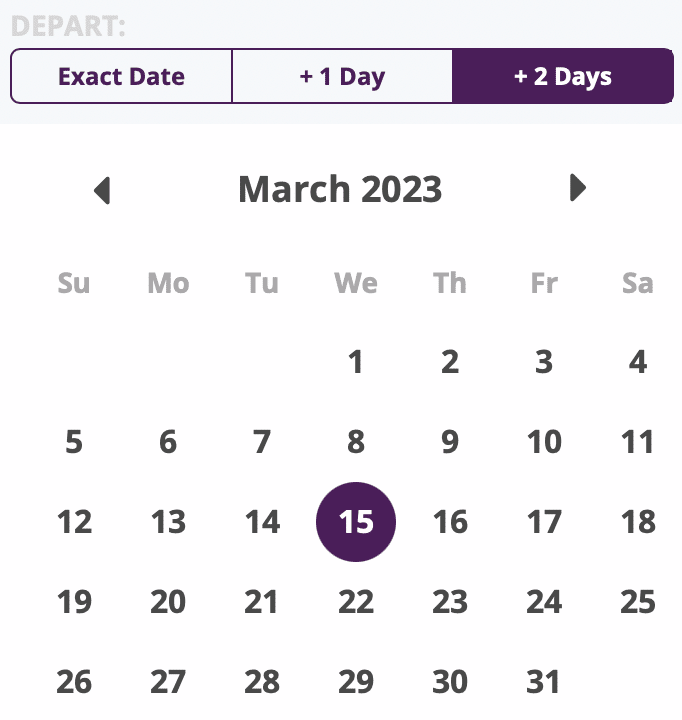 To search multiple dates, simply select “+ 1 Day” or “+ 2 Days” when you’re selecting a date.
