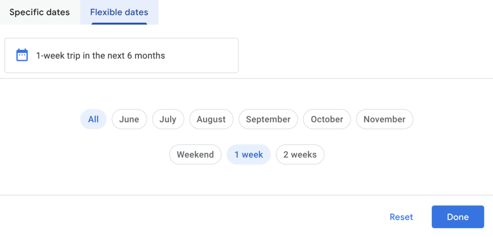 And if you’re flexible with both dates and destinations, then you can choose “Flexible dates” rather than “Specific dates” under the Explore map, which allows you to broadly describe what kind of trip you’re looking for (which month of the year and a rough idea of the duration). Google Flights will then search for all possible itineraries that meet your criteria as you move around the world map.