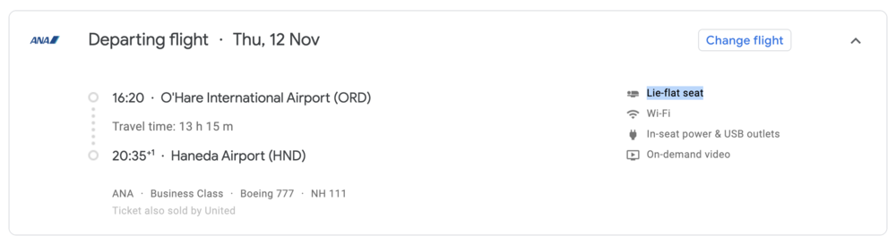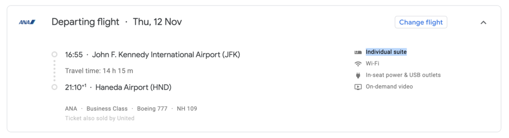 For example, if you wanted to tell the difference between ANA’s new 777 business class and ANA’s older staggered business class seats on the 777, then you can track down the flight using Google Flights and see if it’s identified as an “Individual suite”…