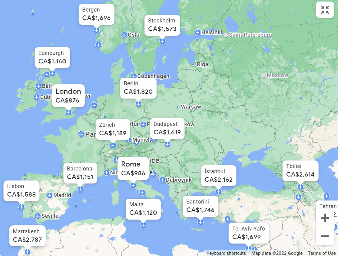 So far, all of our optimization tools have focused on finding the best flights possible for a given origin–destination pair. But what if you’re open to travelling to a variety of destinations? Well, that’s where Google Flights’s Explore map – one of its most powerful features – comes in.