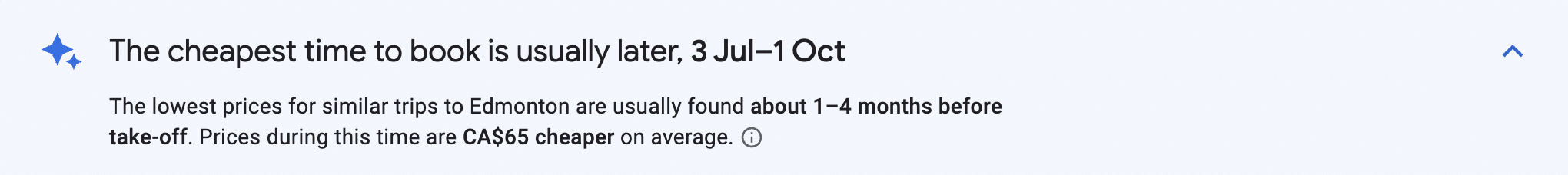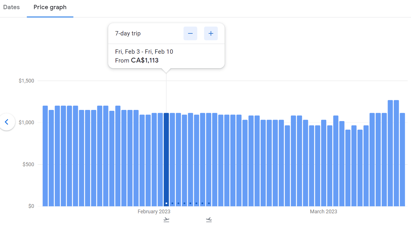 In some instances, Google Flights may even show you the best time to book for your target dates. It bases its predictions on similar searches that yield the highest frequency of lowest prices.