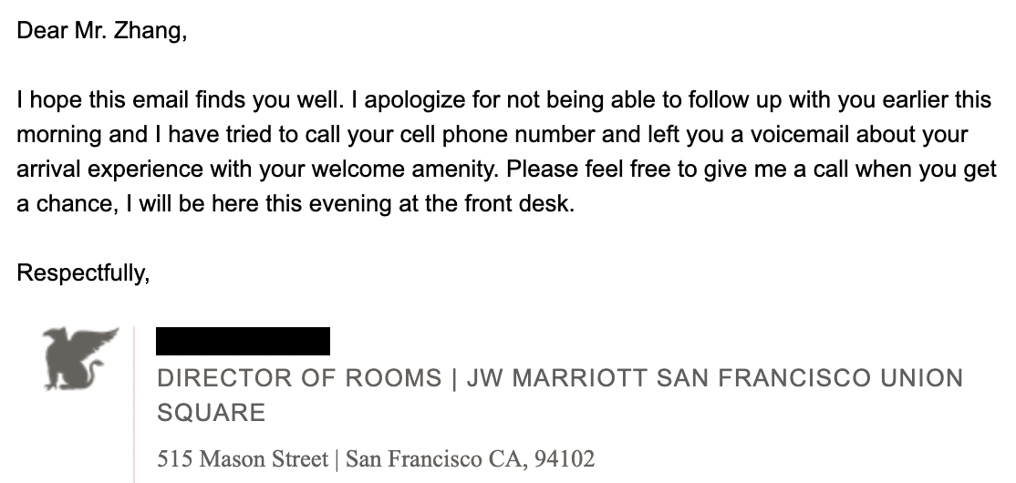 To the manager’s credit, he called me the following day even after I had checked out, even sending me an email to call him back when he couldn’t get a hold of me.