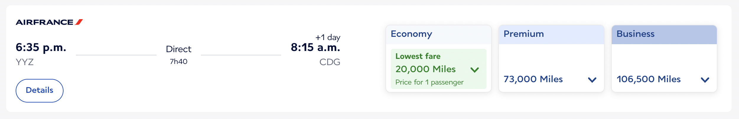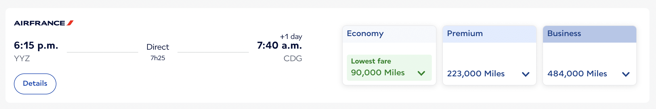 Take for example a flight from Toronto to Paris in economy on Air France. If you book early enough, you can snag an award ticket for only 20,000 miles; however, if you book too close to your travel date and all the “saver”-level seats have been booked, that same economy seat to Paris may cost 90,000 miles!