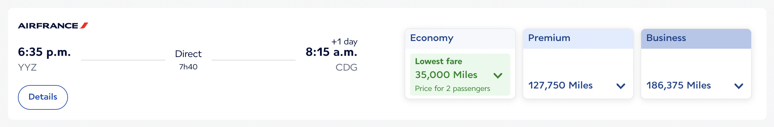 Looking once again at the example of flying from Toronto to Paris, if I were to add a child onto the booking, the total price of the award redemption would now be 35,000 Flying Blue miles (20,000 miles for the adult and 15,000 for a child).