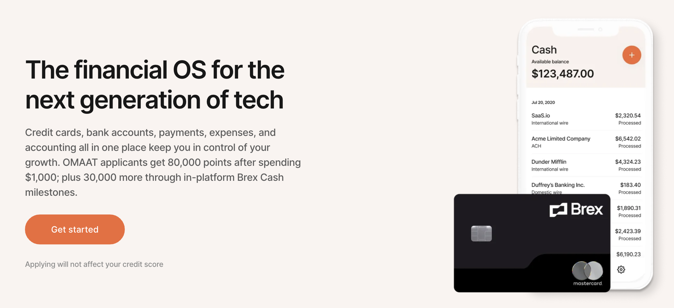 - 80,000 Brex points upon spending US$1,000 in the first three months
