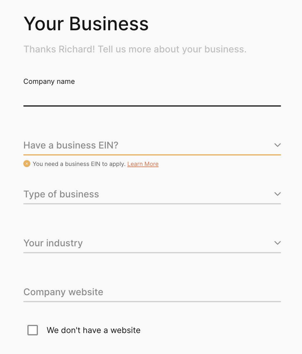 The application is relatively straightforward. At the start, you’re asked to enter your name and email, followed by details about your business.
