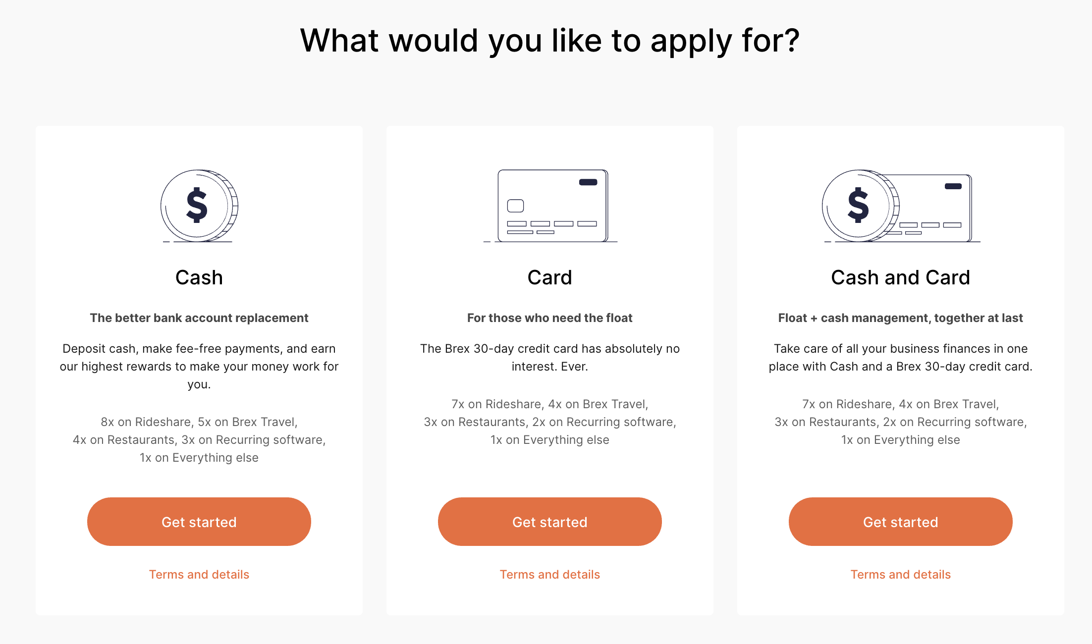 Then, you’re asked to select the Brex product you’d like to apply for.