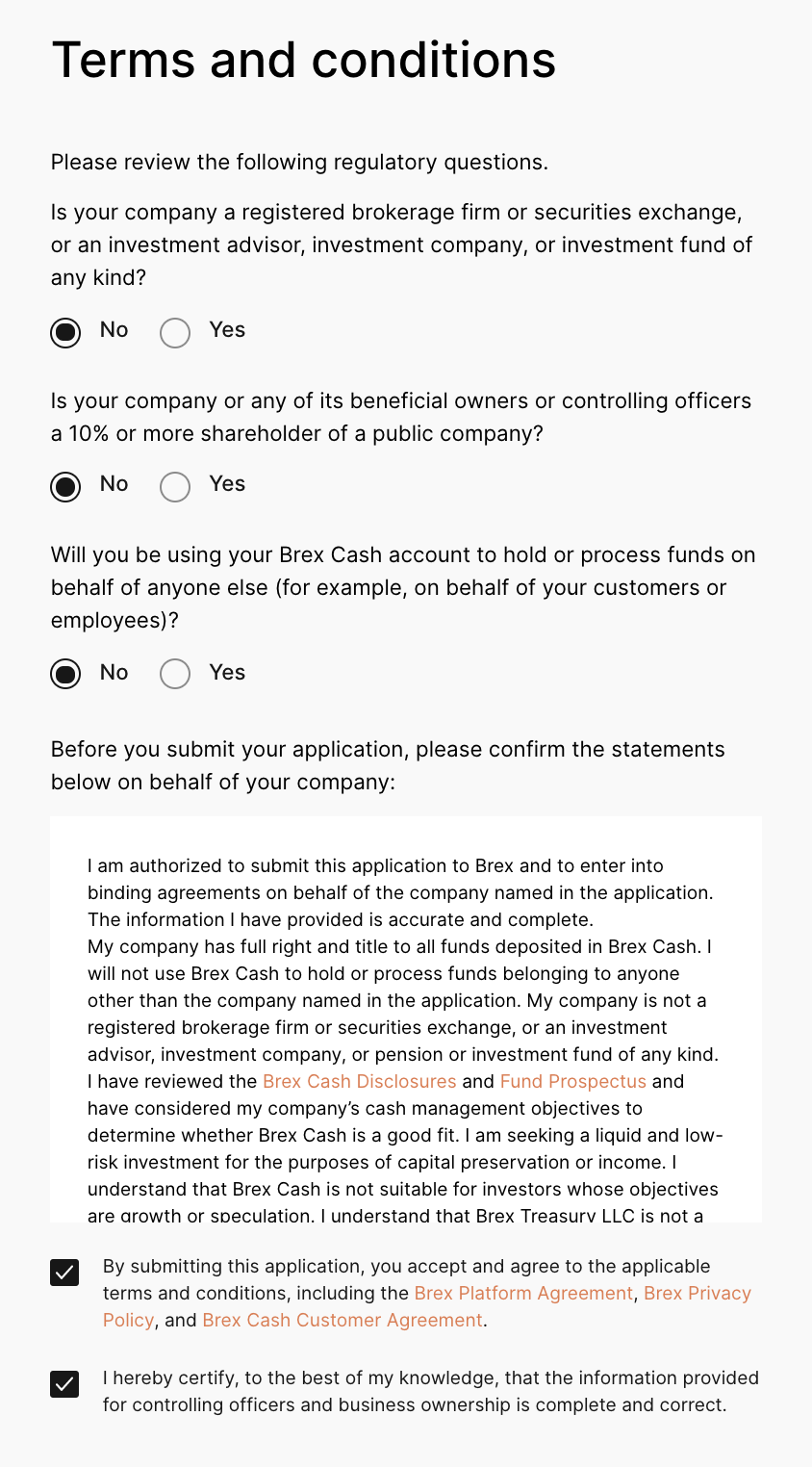 Based on applicants’ experiences, it seems like there are two types of approval for Brex Cash: an instant approval and a conditional approval. It’s more likely that you’ll receive an instant approval if you have an online presence of some sort, whereas companies without a significant online presence may require a manual approval that takes a few days’ time.