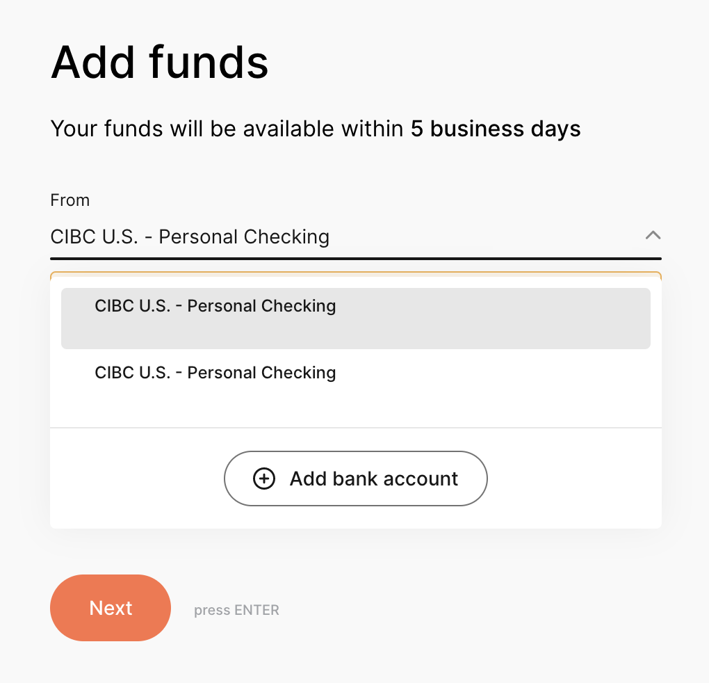As a cash management account, Brex Cash needs to be loaded with funds before you’re able to spend funds out of the account. I connected my Brex Cash account to my CIBC US bank account, and transferred over some funds via ACH within two business days.