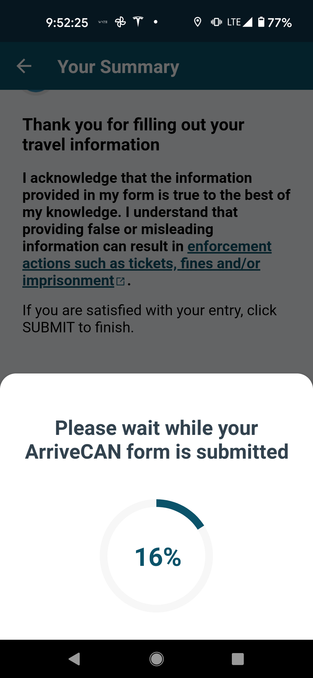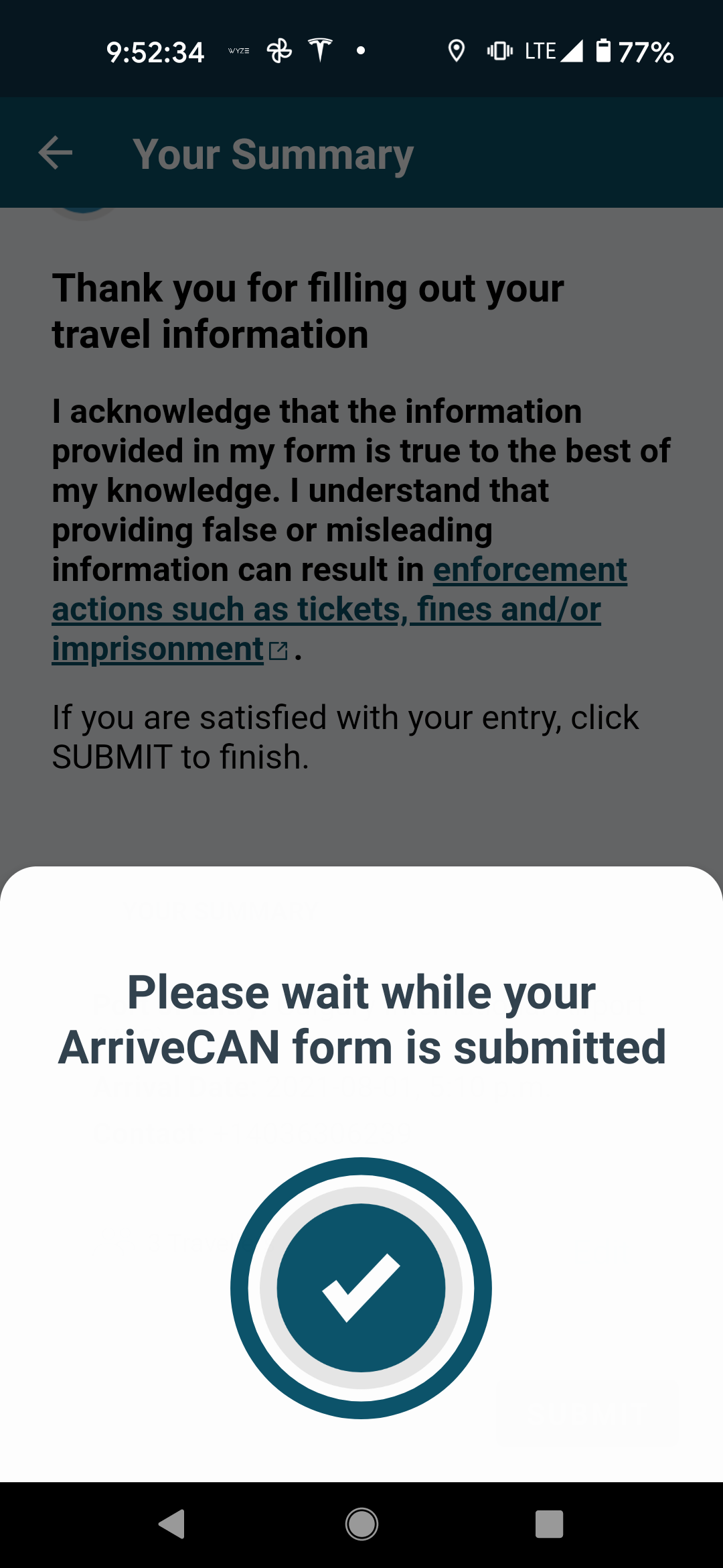 And once you hit submit, the information is uploaded – presumably to the Canadian Border Services Agency.
