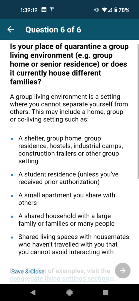 Finally, you are asked for the actual location of your your home/quarantine location.