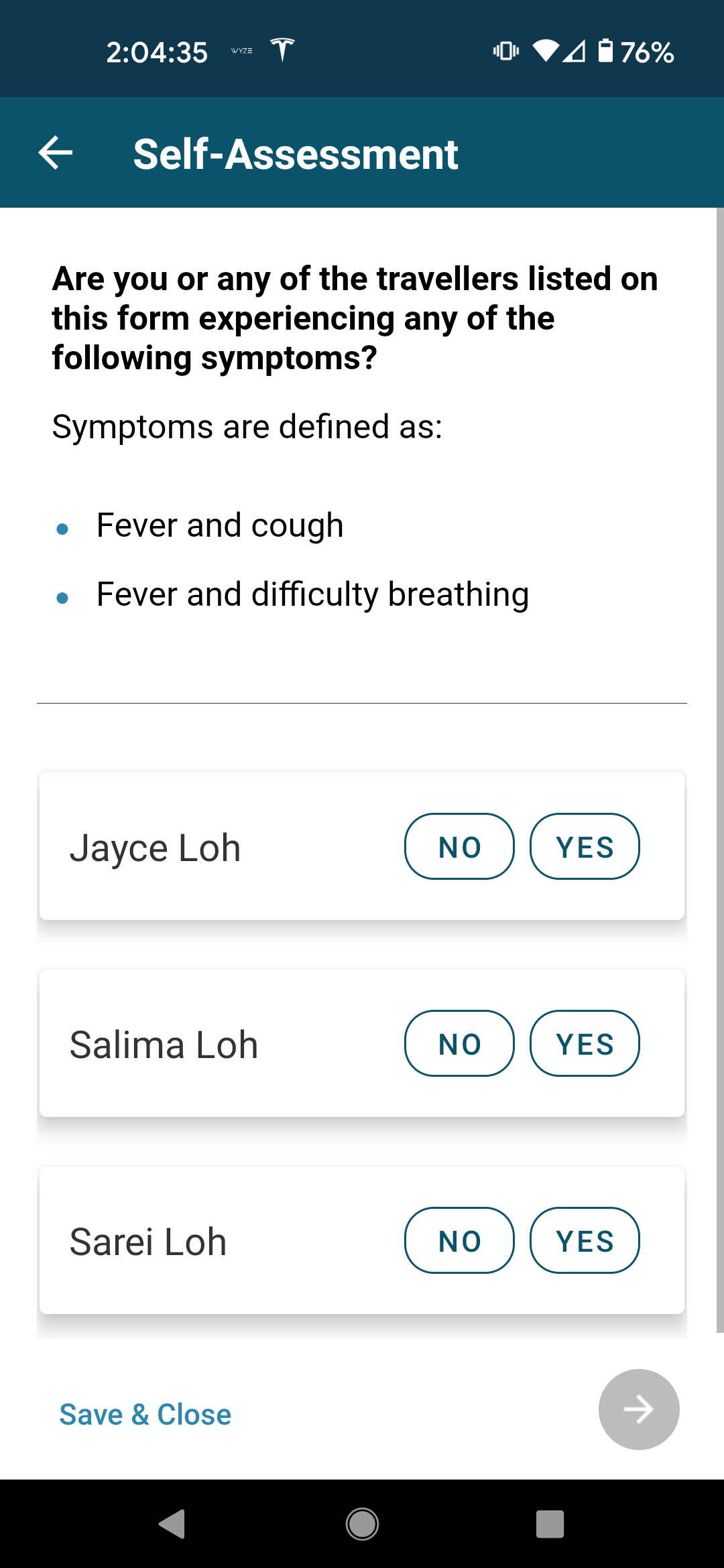 As if your negative COVID-19 test results weren’t enough, you are also asked if you are presenting with any common symptoms of COVID such as fever, cough, or difficulty breathing.