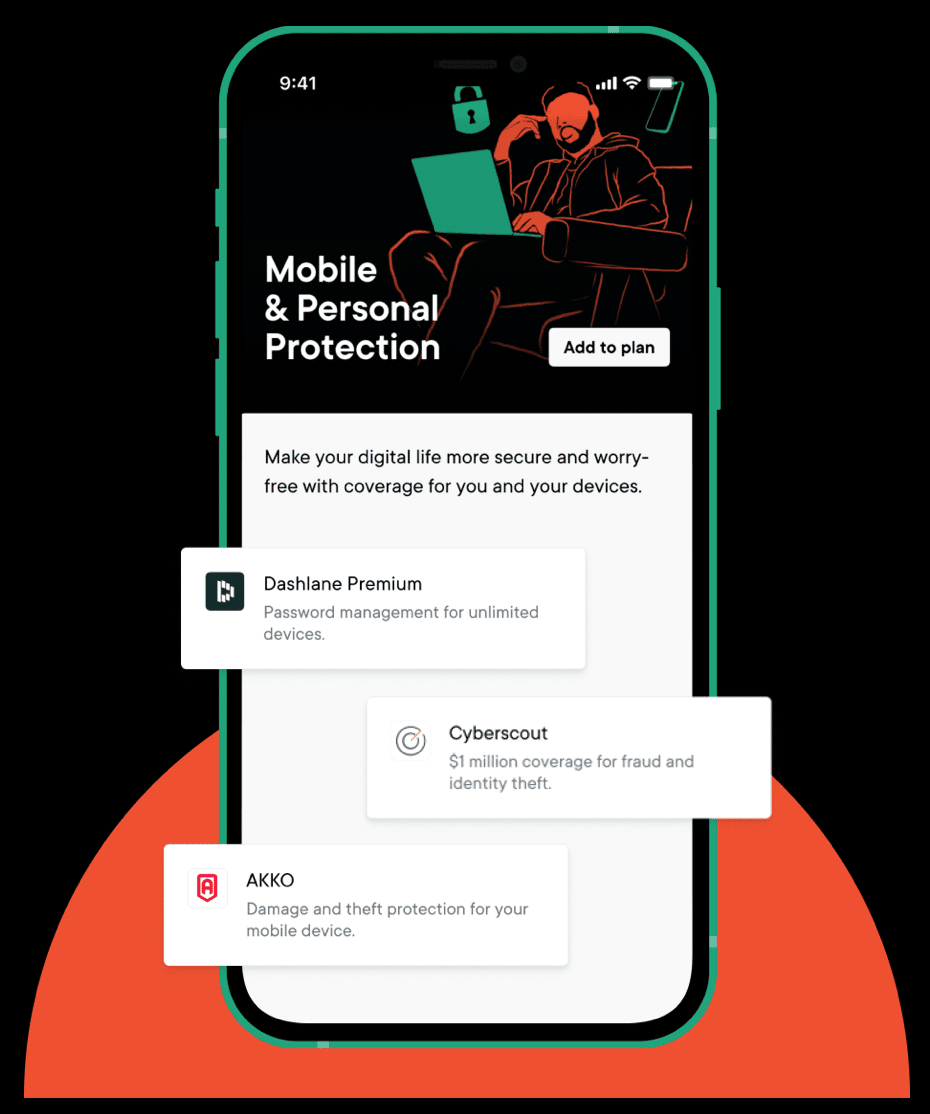 - Mobile & Personal Protection offers mobile device insurance, credit monitoring, and password management at $9.99 per month.