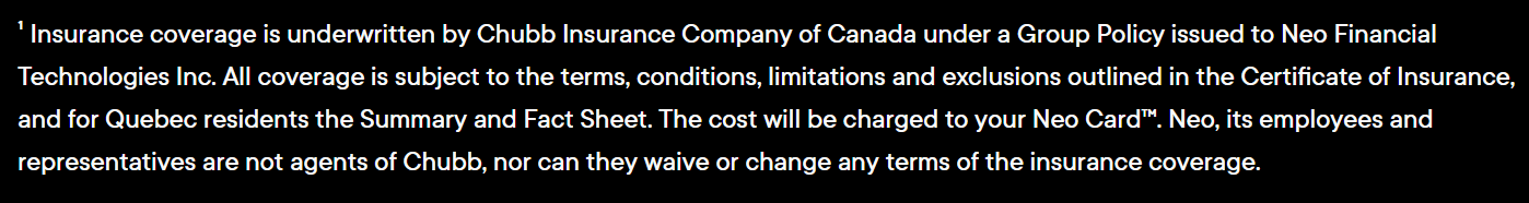 The insurance may be worth that to many, because it appears to be somewhat strong, but my issue is that you cannot access what the coverage specifically entails unless you already have a Neo Card™.