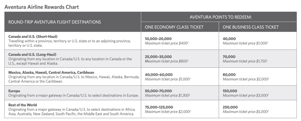 Here’s the CIBC Aventura redemption chart: