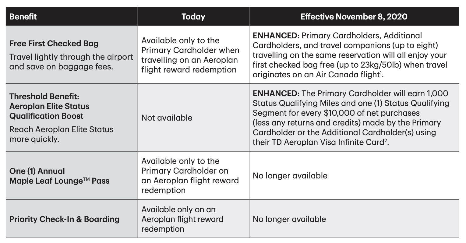 A few other benefits are going away, but those are also offset by a stronger insurance package, and in the TD Aeroplan Visa Infinite’s case, a $100 NEXUS credit as well.