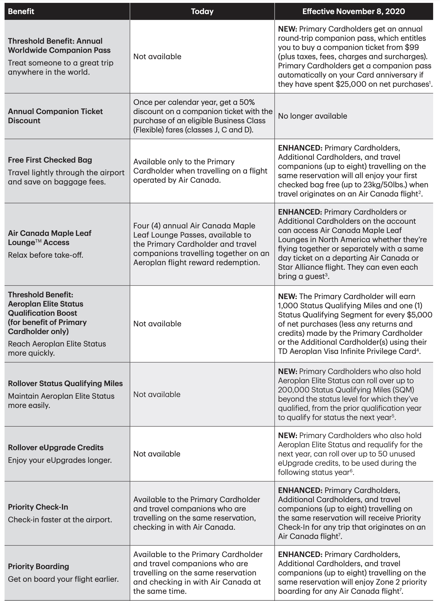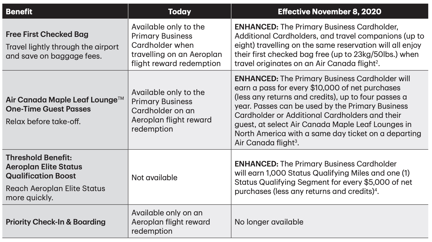 Overall, I think the ability to share benefits with authorized users, as well as the preferred pricing on Air Canada flights as a credit card holder, gives the value proposition a boost in all three segments.