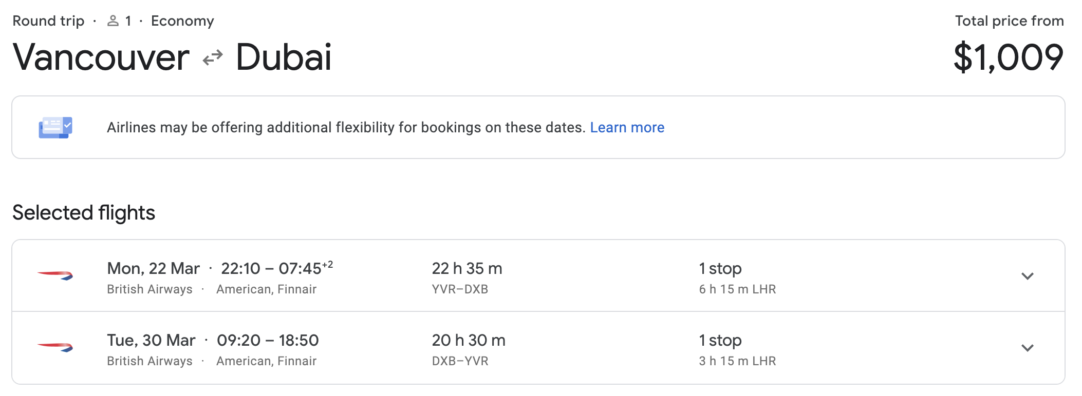 Some of the new economy class price points don’t even make any sense. For example, a flight from Vancouver to Dubai will now cost at least 140,000 Aeroplan points round-trip in economy class, once you factor in the necessary connections (outside of the rare scenarios when the Air Canada flights can be priced lower than the published ranges).