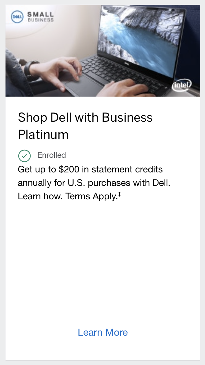 Additionally, the card will offer an additional two US$100 credits for US purchases with Dell; this is on top of the two US$100 Dell credits that are already offered on the card, making it a total of US$400 in Dell credits for the year. These are divided into two periods: a net US$200 credit until June 30, and then another net US$200 credit between July 1 and December 31.