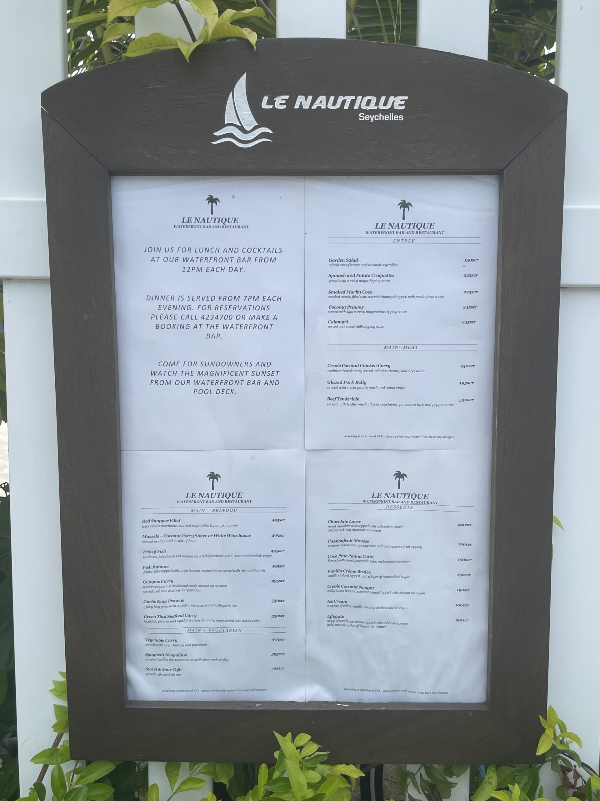 The food was good, but like all Seychelles resorts, pricey. You can score 10% off food and beverage through a coupon from SeychellesBookings.com if you make a ferry booking through them.
