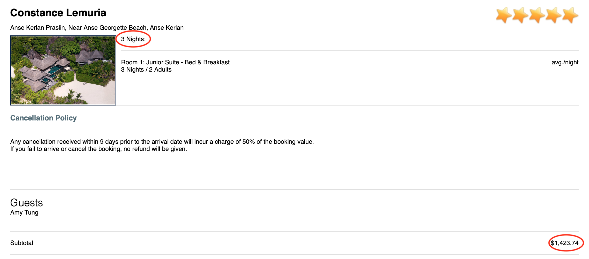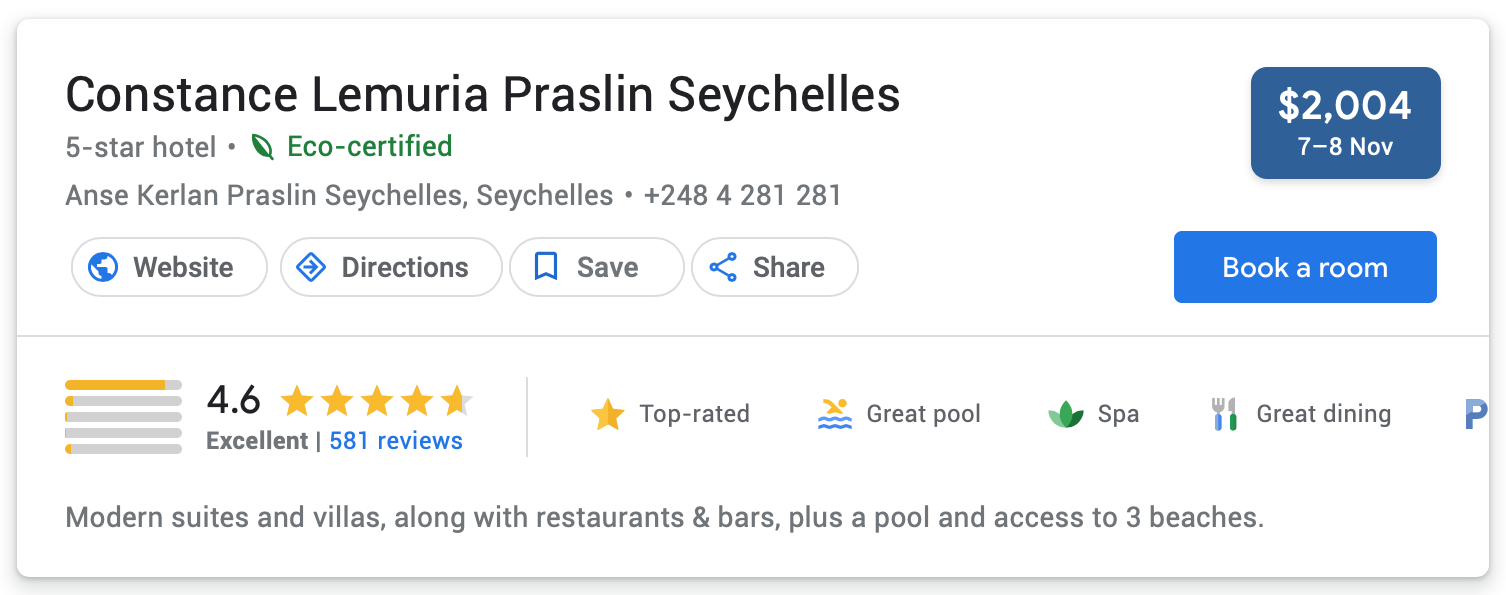 For our three nights on Praslin, we stayed at the Constance Lemuria Praslin Seychelles.