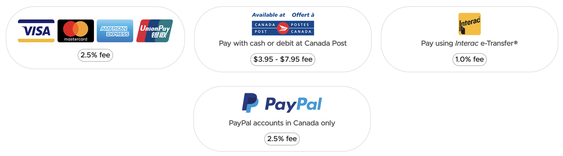 For vendors located in Canada, you have the option to pay with a Visa, Mastercard, or American Express product, which will incur a fee of 2.9%.