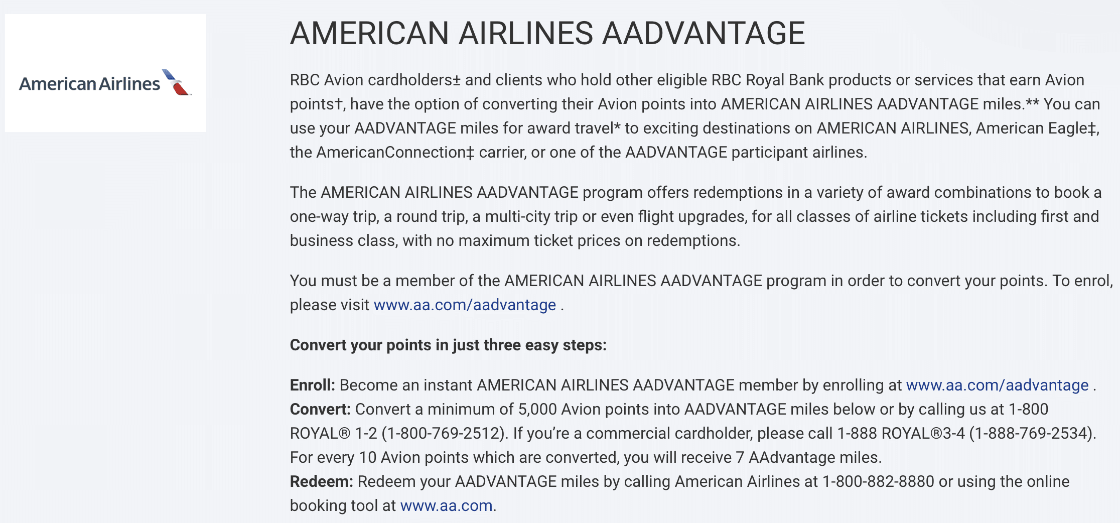 In Canada, American Airlines AAdvantage miles are otherwise very difficult to earn, which makes RBC Avion points both unique and valuable.