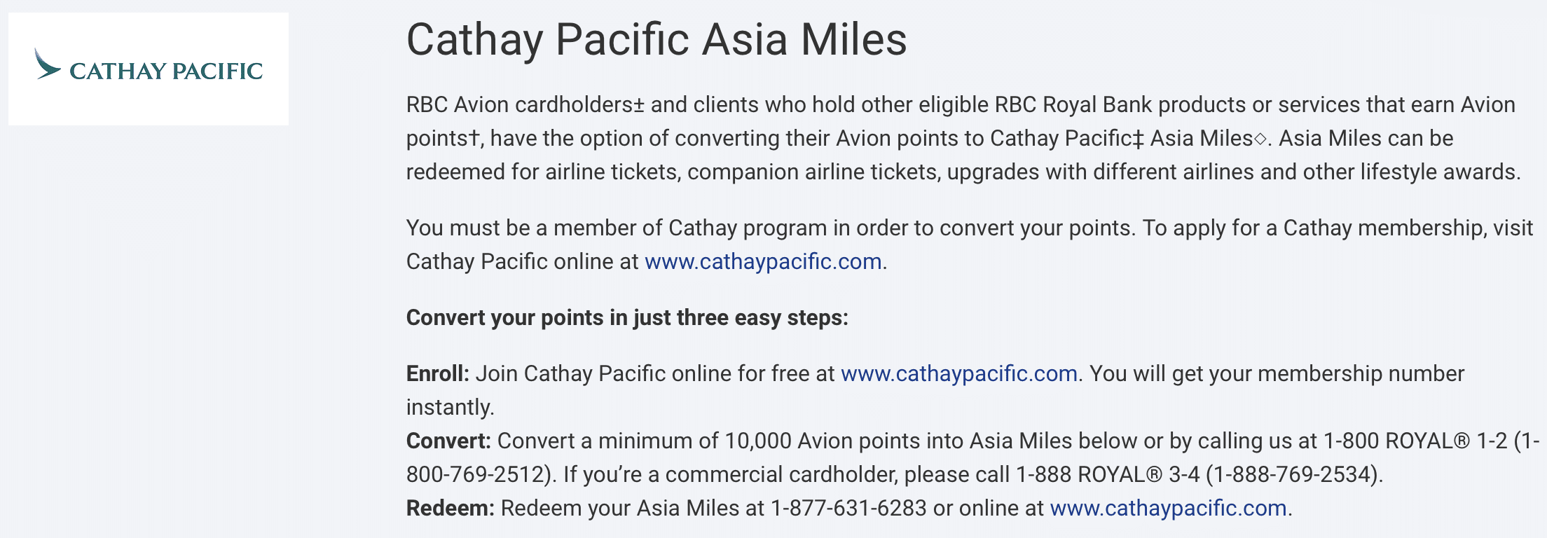 Transferring RBC Avion to Cathay Pacific Asia Miles