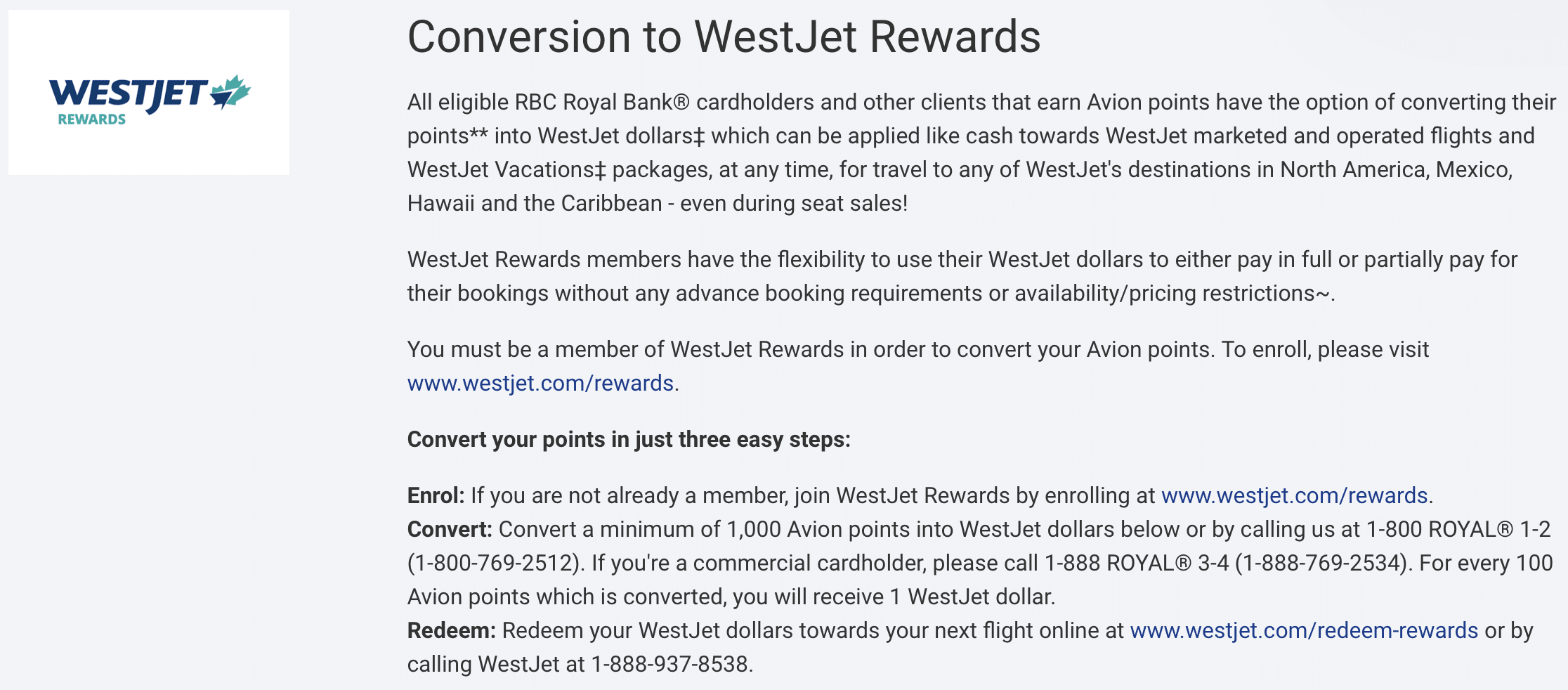 Lastly, RBC Avion points can transfer to the WestJet Rewards loyalty program. If you choose to do this, your Avion points become WestJet Dollars, which can be used to book flights with WestJet and other affiliated airlines.