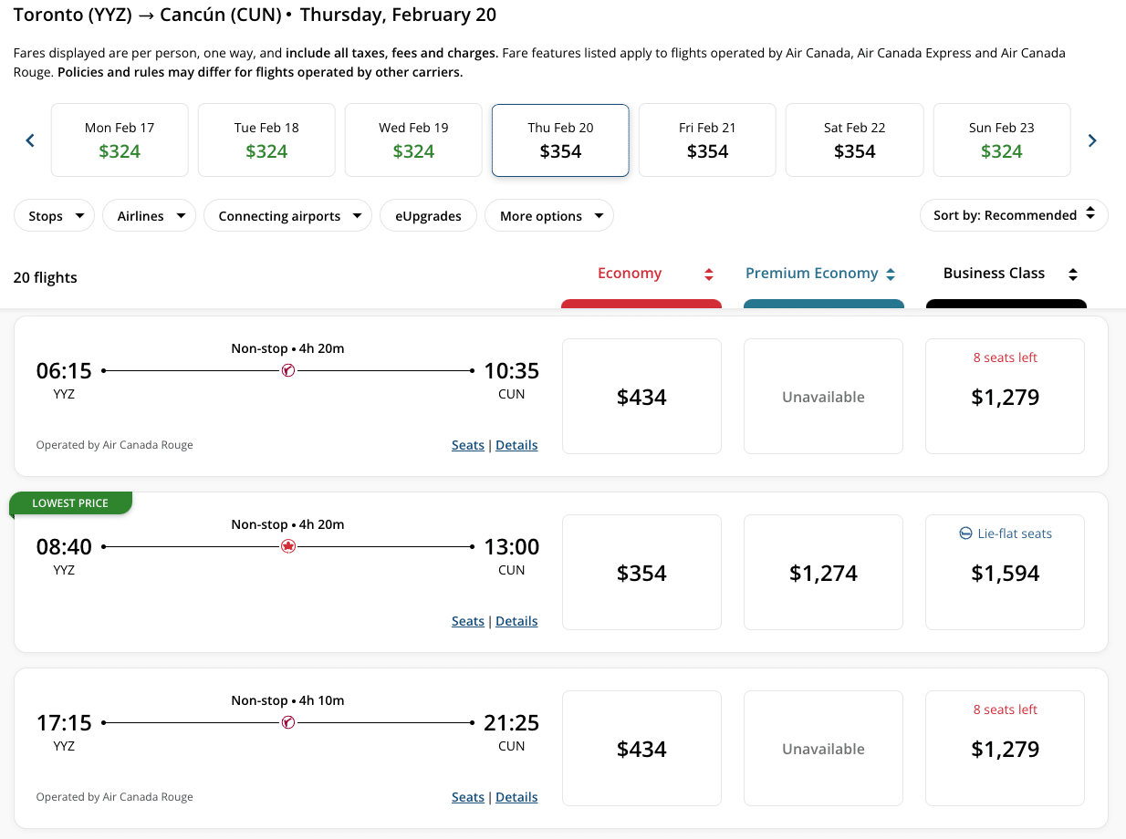 With multiple daily flights from Toronto (YYZ) to Cancún (CUN), it shouldn’t be too difficult to redeem Aeroplan points on a schedule that suits you.