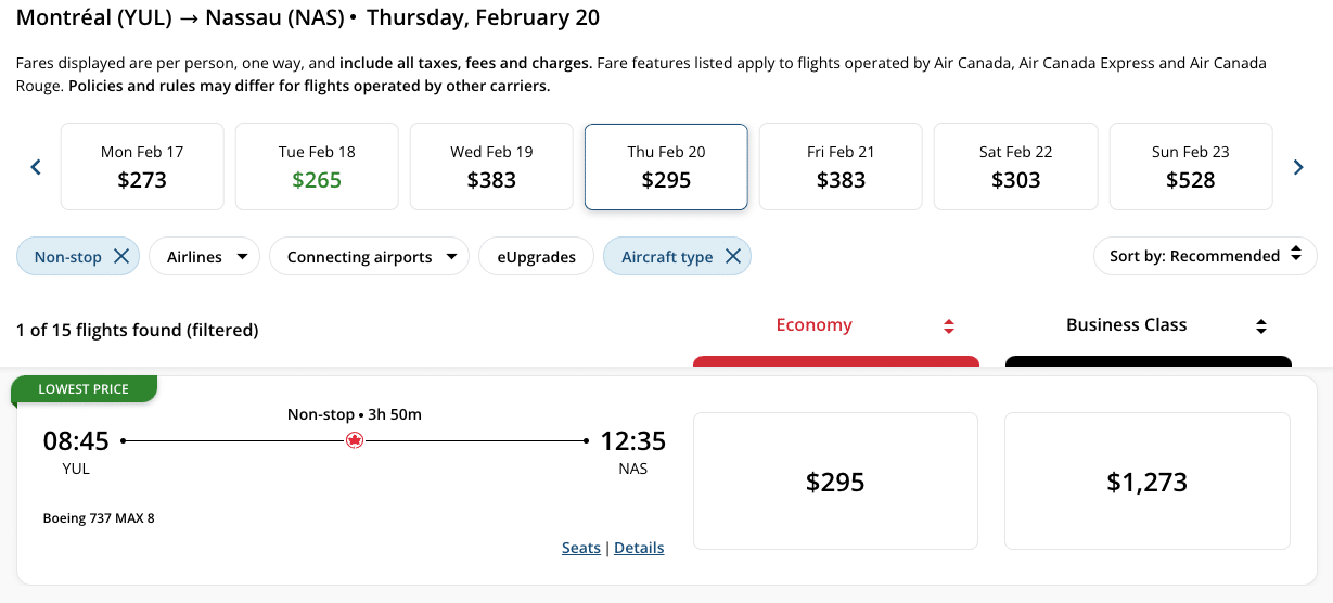 With multiple flights every week making it easy to find a schedule that works for you, the Montreal (YUL) to the Bahamas (NAS) route is a fantastic way to redeem your Aeroplan points.