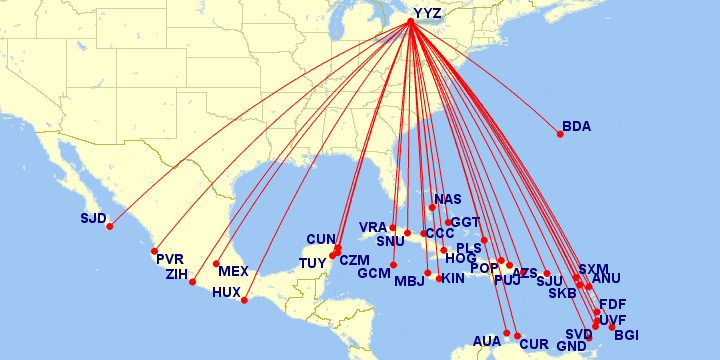 If you’re flying out of Toronto, you’re in luck. Being Air Canada’s largest hub, it has the most extensive selection of flights to warm weather destinations.
