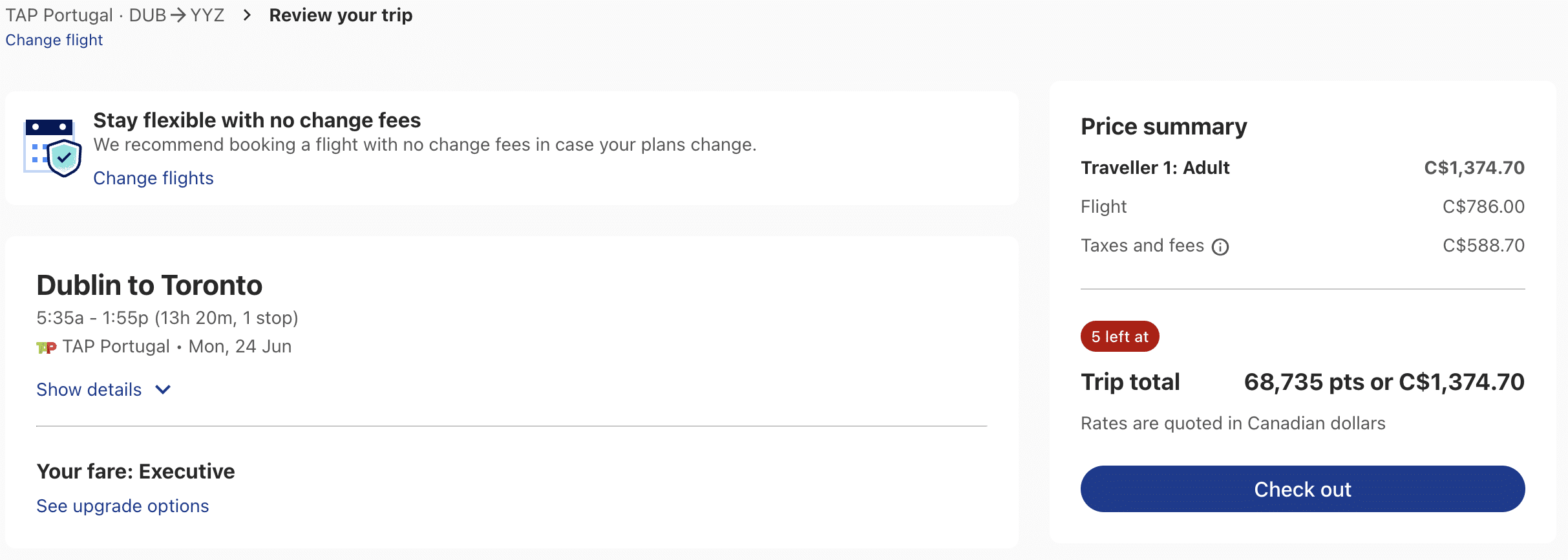 It’s always a good idea to cross-reference the flight cost you see in the RBC Avion Rewards portal with the price when booking directly with the airline, as you may find lower prices when booking direct.