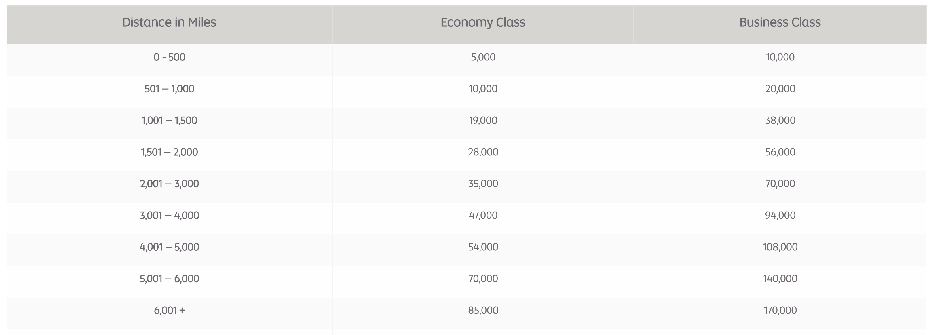 - 46,000 KrisFlyer miles for a ticket in business class / US domestic first class.