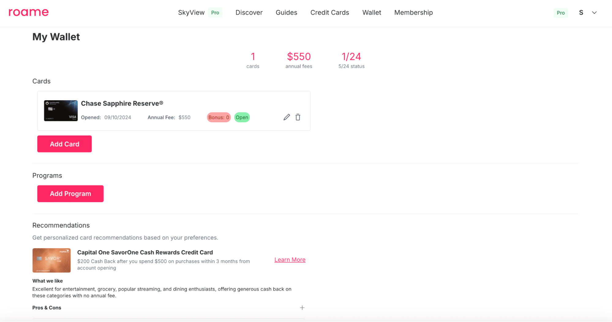 Through this feature, you can input your cards’ opening dates, welcome bonus quantities, and whether you’ve already met the welcome bonus requirement. It also keeps track of whether you’ve breached Chase’s “5/24 rule” in the US.
