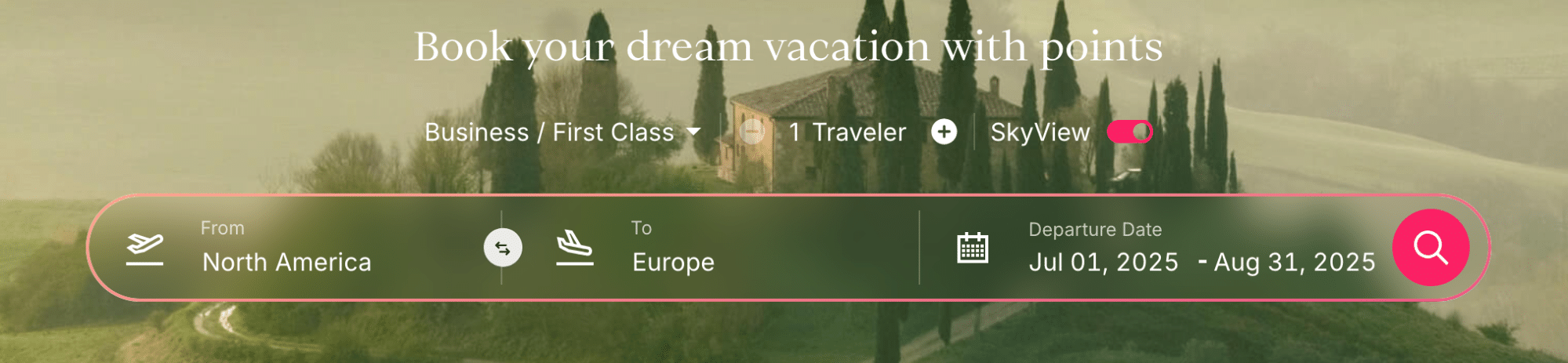 If you’d like to use the SkyView range feature for your search, you’ll also need to select that button, and from there, you can choose your preferred travel date range based on your membership tier.