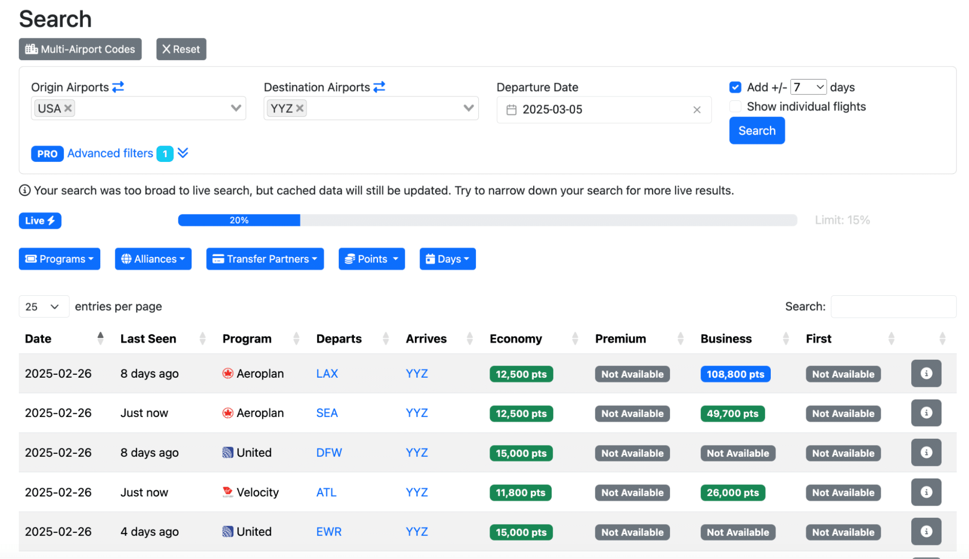 This means that if you’re not seeing results come up for one program, you can use the search results from other alliance or partner programs and then cross-check these results with the actual loyalty program afterwards.