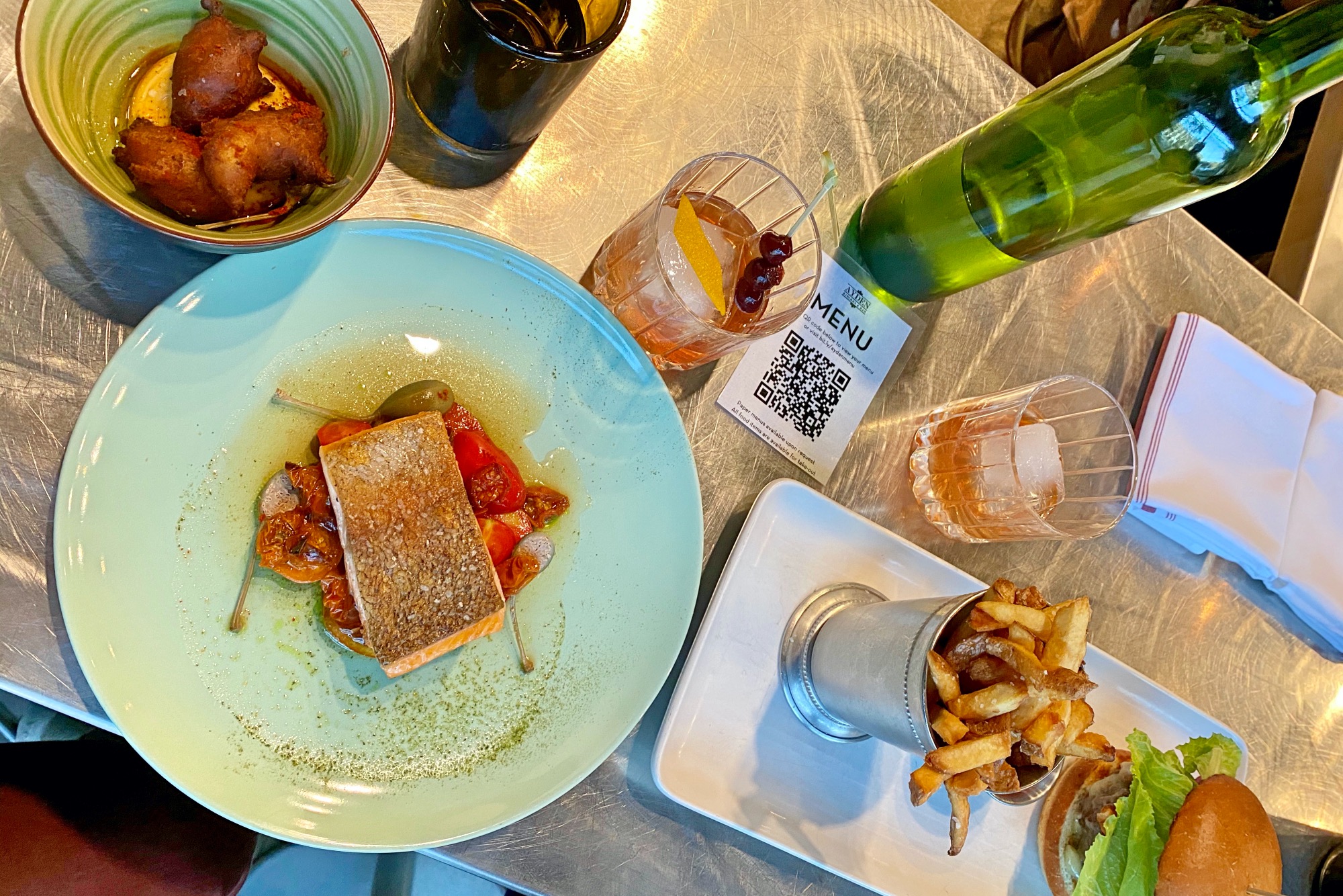 One of the city’s top-rated restaurants is Ayden Kitchen & Bar, featuring the work of Chef Dale MacKay, winner of Top Chef Canada. Zach and I dropped by on my second evening in town to give it a try. I enjoyed a delicious serving of grilled salmon with tomatoes and baby capers, although the real highlight was their excellent cocktail menu.