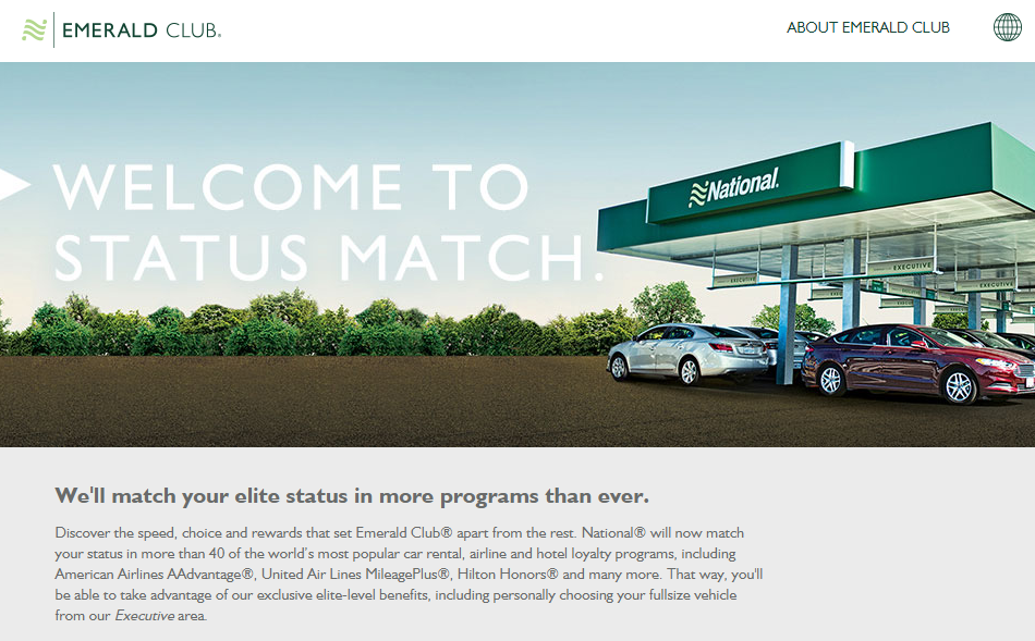 National offers a very generous status match program, which will match status with many different travel rewards programs, including airline frequent flyer programs, hotel loyalty programs, and other car rental programs.