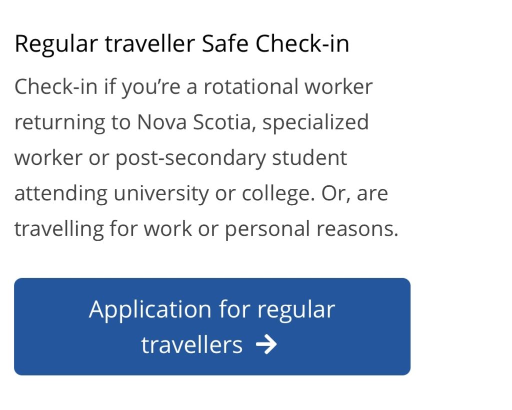 Prior to arrival, you need to “apply for travel”, which essentially means you complete Nova Scotia’s Safe Check-in Form. On the form, they ask for your contact details, your arrival information, where you will be staying in Nova Scotia, your vaccination status, and proof of vaccination.