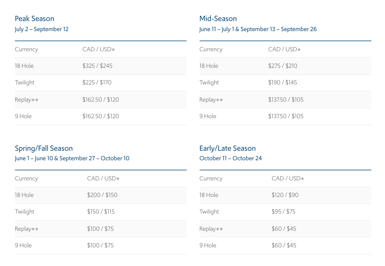 Playing a round of golf at Canada’s top course is no cheap affair during peak season. If you’re planning on staying off-site, be prepared to pay even more.