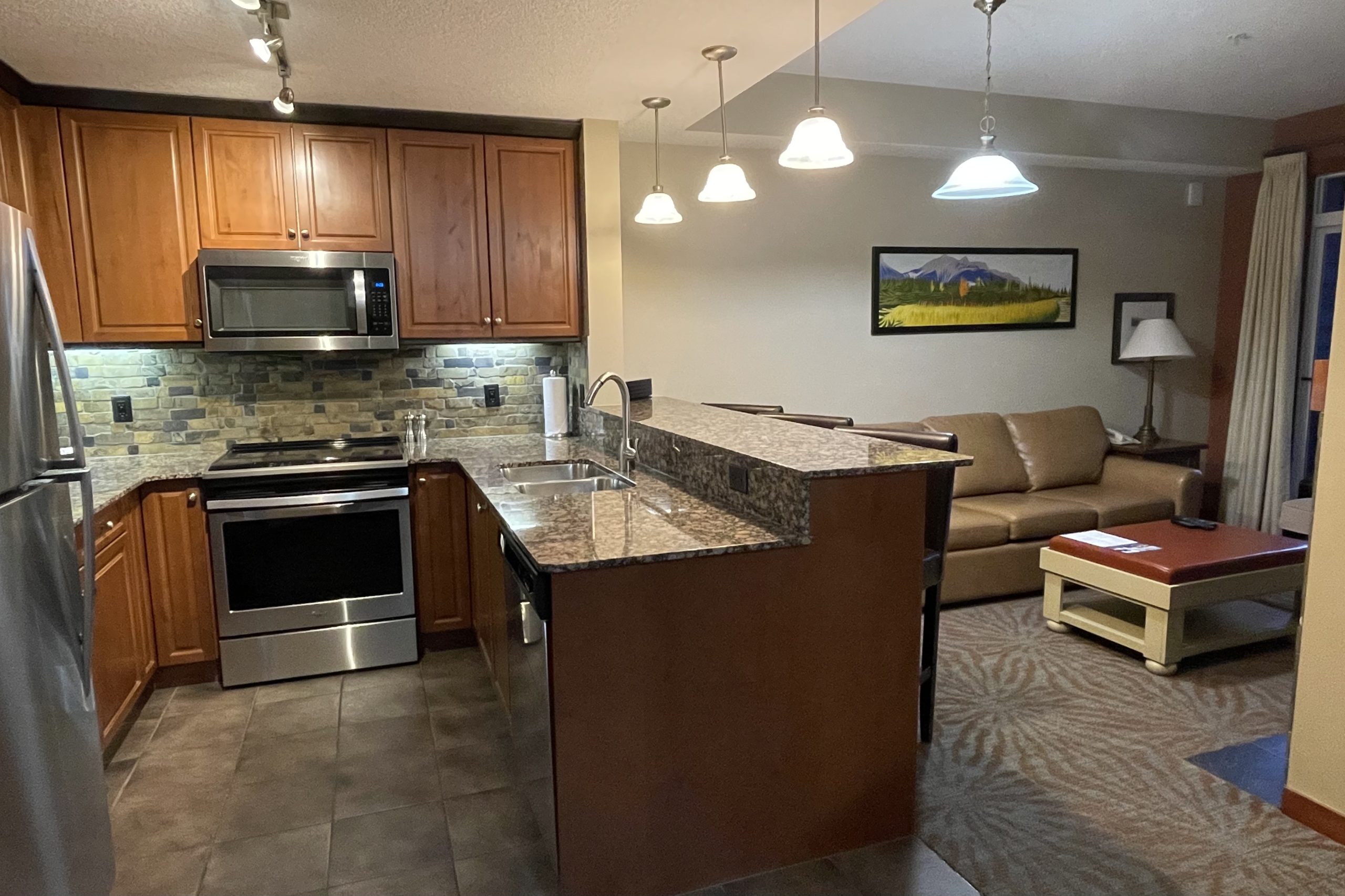 With the kitchenette, you can easily pick up a few things at the grocery store or from Costco in Calgary and cook your own meals.